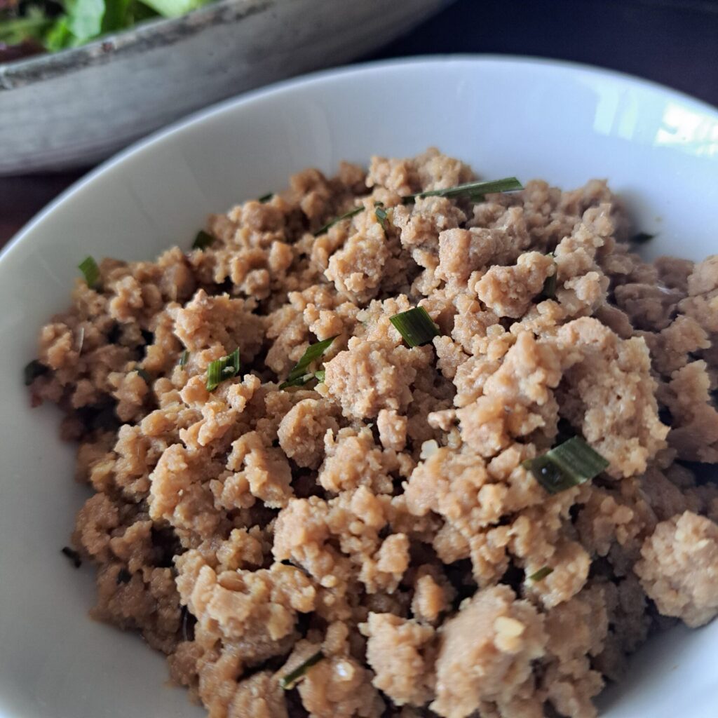 ひき肉の味付けのときに刻んだパクチーやレモンバームなどを入れるとアジアっぽい味になります。