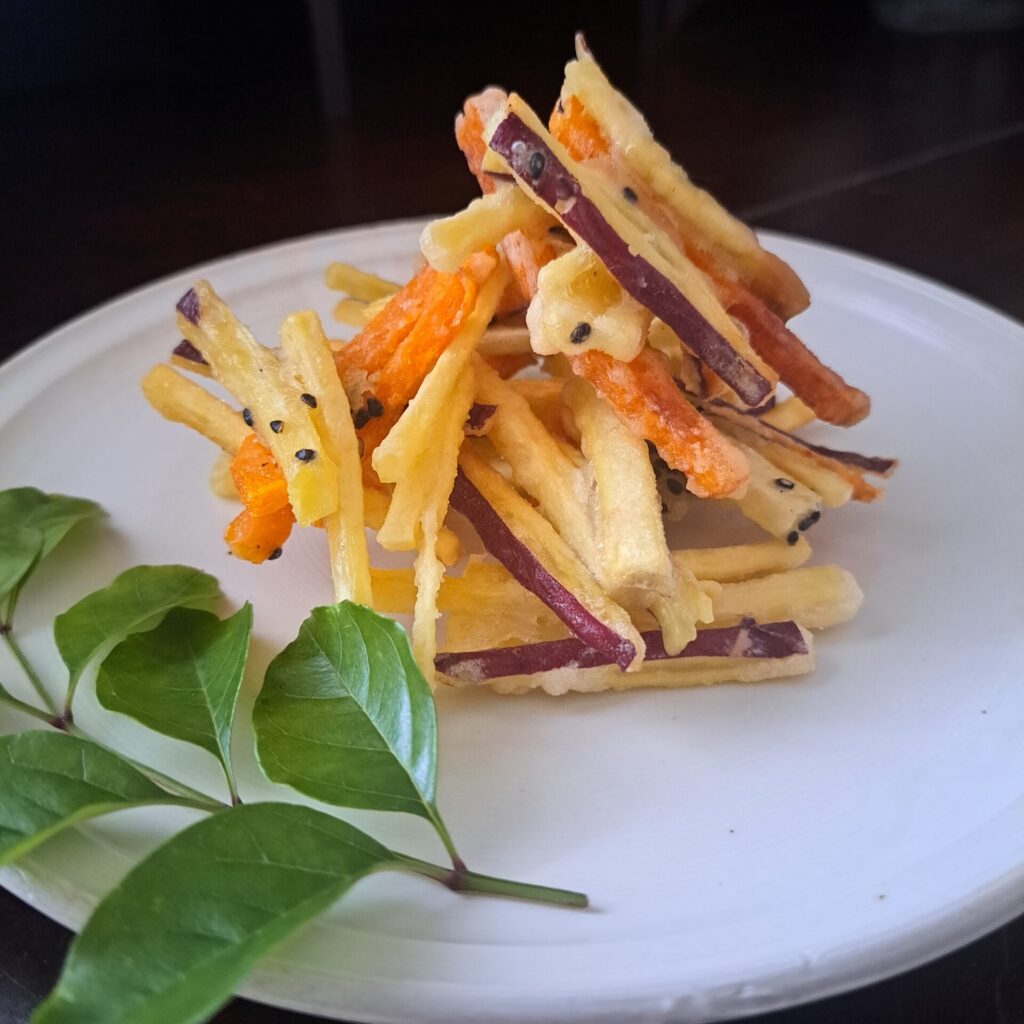 ”がね”とは熊本県天草地方で蟹のことを”がね”と言い、揚げたさつまいもが手を広げた
